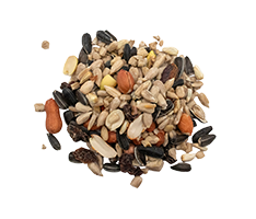 Sunflower Kernels, Peanuts, Sunflower Seeds, Pistachios, Hulled Pumpkin Seeds, Dried Cranberries, Mineral Oil, Dried Milk Protein, Ferrous Sulfate, Calcium Iodate, Copper Sulfate, Manganous Oxide, Magnesium Oxide, Zinc Sulfate, Vitamin B12, Niacin, Pyridoxine Hydrochloride, Thiamine Mononitrate, Vitamin A Supplement, Vitamin C (Ascorbic Acid), Vitamin E Supplement, Menadione Sodium Bisulfite Complex (Source of Vitamin K Activity), Vitamin D3 Supplement, Biotin, Choline Chloride, D-Calcium Pantothenate, Folic Acid, Riboflavin, DL-Methionine, L-Lysine Monohydrochloride, Potassium Chloride, Sodium Bicarbonate, Fructooligosaccharides, Ethylenediamine Dihydroiodide, Flax Seed Oil, Artificial Flavor.